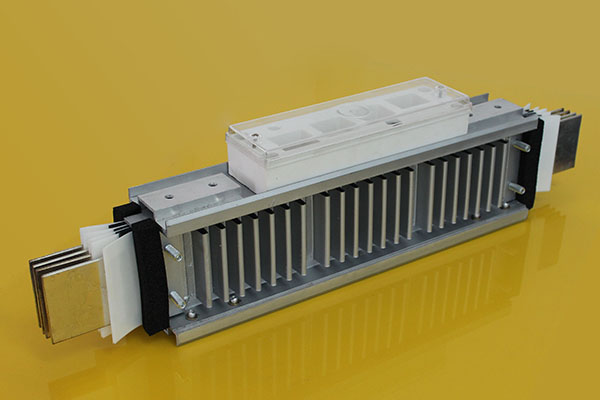 1. structure. Heat energy intensive busbar (hereinafter referred to as the "energy-saving busbar") of the heat sink structure of U type tubular arranged at both sides of the board, to capture the U type tubular radiator technology and equipment connected with the side plate of the technical bottlenecks, the heat dissipation area of fins increases more than 5 times, greater use of the the effective space side plate, increasing the cooling area. The heat dissipation area is more than 2.3 times more than the common bus bar, which is more than 1.7 times more than the aluminum alloy heat sink bus. The protection level is up to IP66.