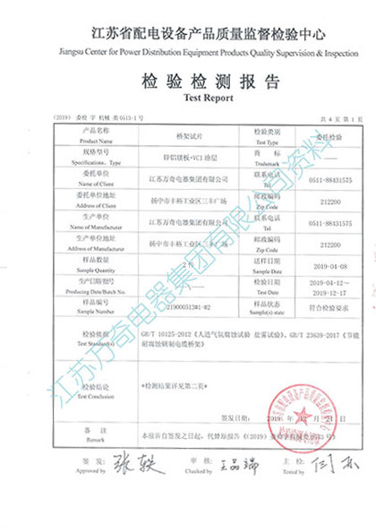 节能耐腐蚀钢制电缆桥架(以下简称节能桥架)是江苏万奇电器集团有限公司(原镇江万奇电器设备有限公司)自主创新研制开发的新一代具有高科技含量的产品。该产品具有高强度结构、耐腐蚀、散热节能等特性,产品及工艺先后获得国家知识产权局发明、实用新型和外观设计二十项专利证书,通过江苏省科技成果鉴定,并获得了江苏省高新技术产品称号,被列为省火炬计划,通过了CQC电缆桥架节能产品认证,被评为国家重点新产品。产品经多年使用实践,技术先进、质量可靠、稳定,具有较高的经济效益和社会效益。